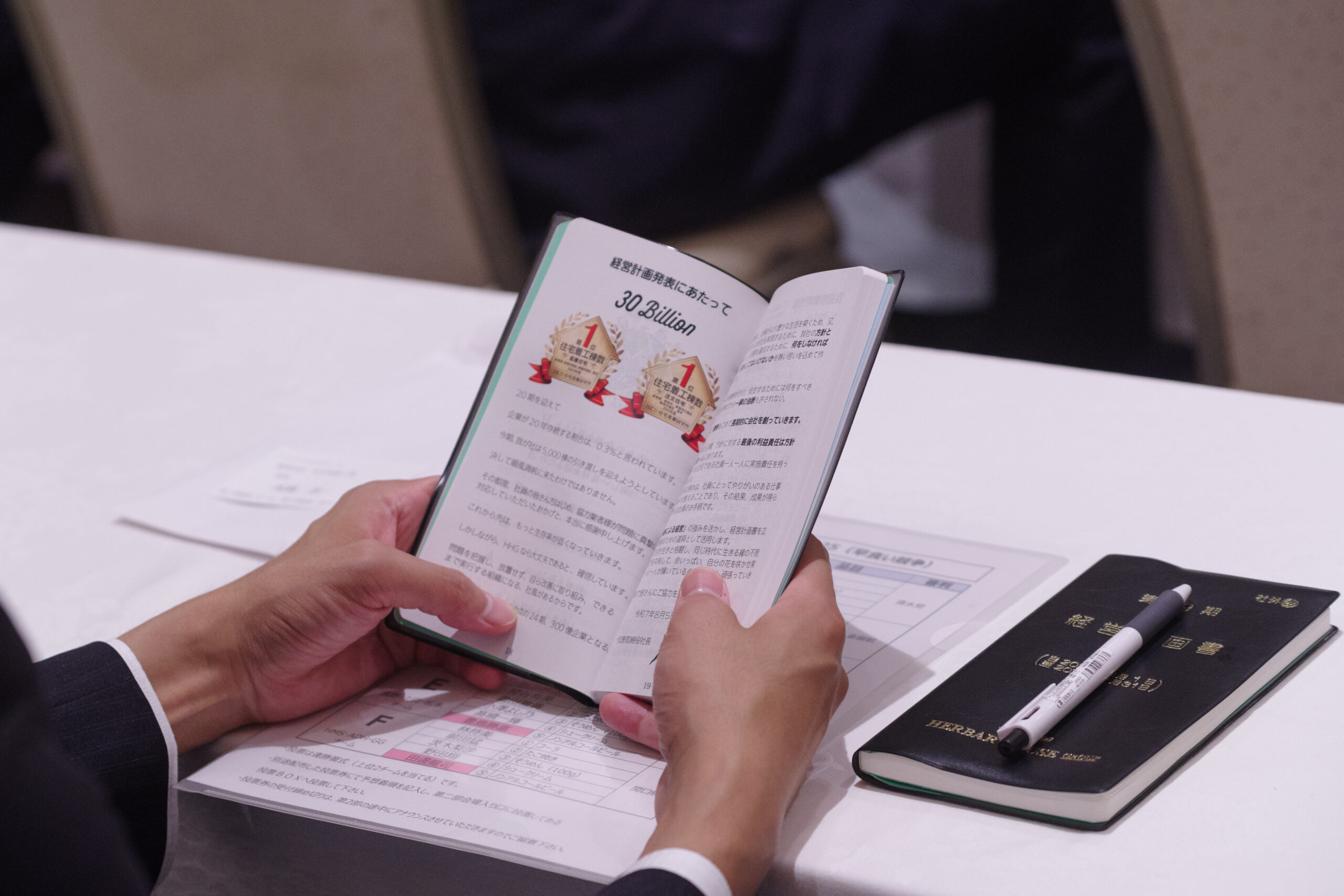 年に一度決算期の始まりに、社長が目標数値や経営方針を発表する場です。 全社員に会社の方針と意図を明確にし共有することで、 会社全体に一体感が作り出され、皆が一丸となって日々の業務を進めることが出来ます。